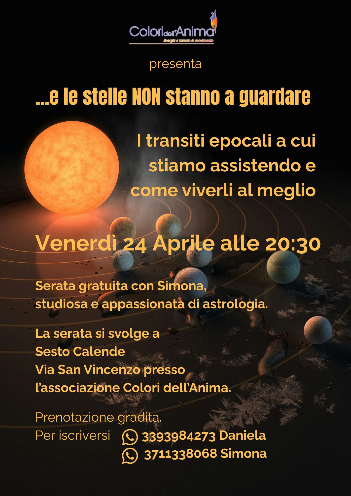 Serata con Simona, studiosa e appassionata di astrologia.